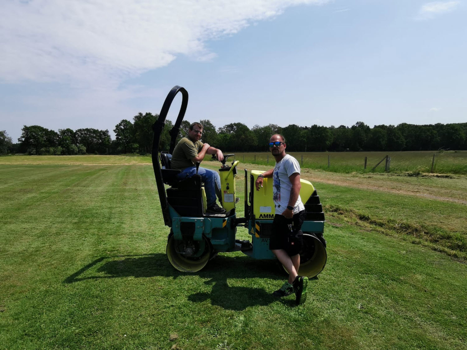 Gepflegt wird unser „Grün“ mit einem selbstfahrenden GPS gesteuerten Mähroboter, (owlRobotics) welcher von findigen Vereinsmitgliedern eigenhändig konstruiert und in Betrieb genommen wurde. Zusätzlich wird die Fläche für einen ruhigen Rollvorgang regelmäßig gewalzt und eingeebnet.