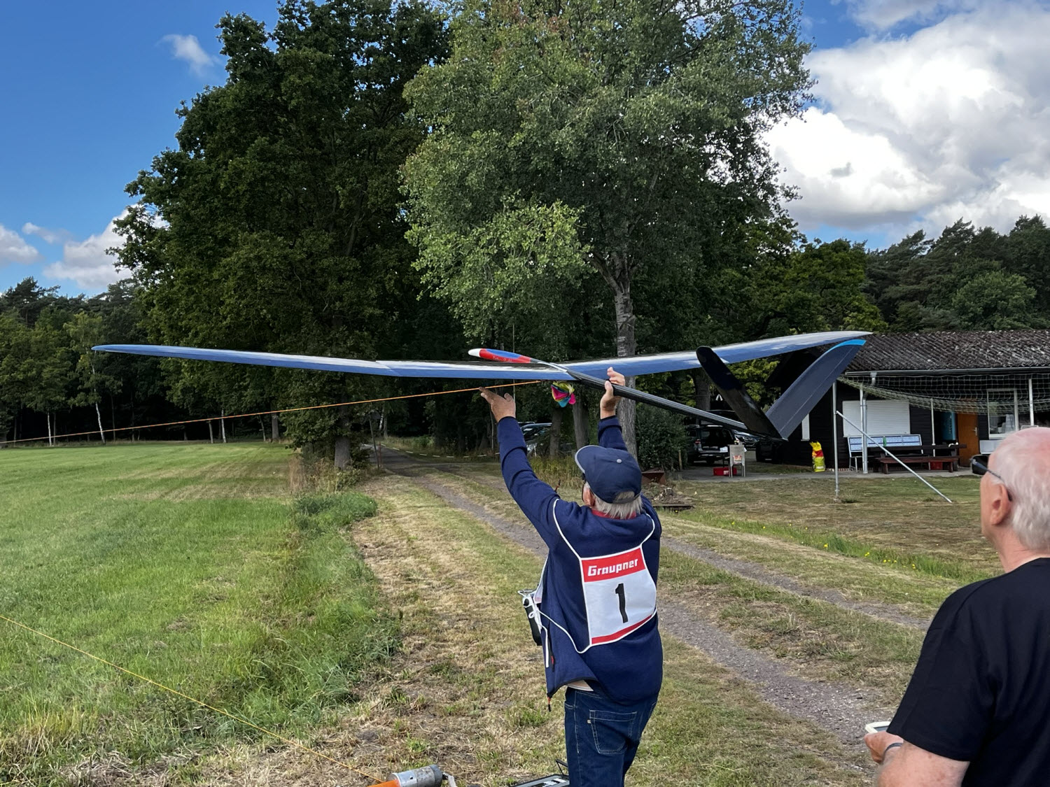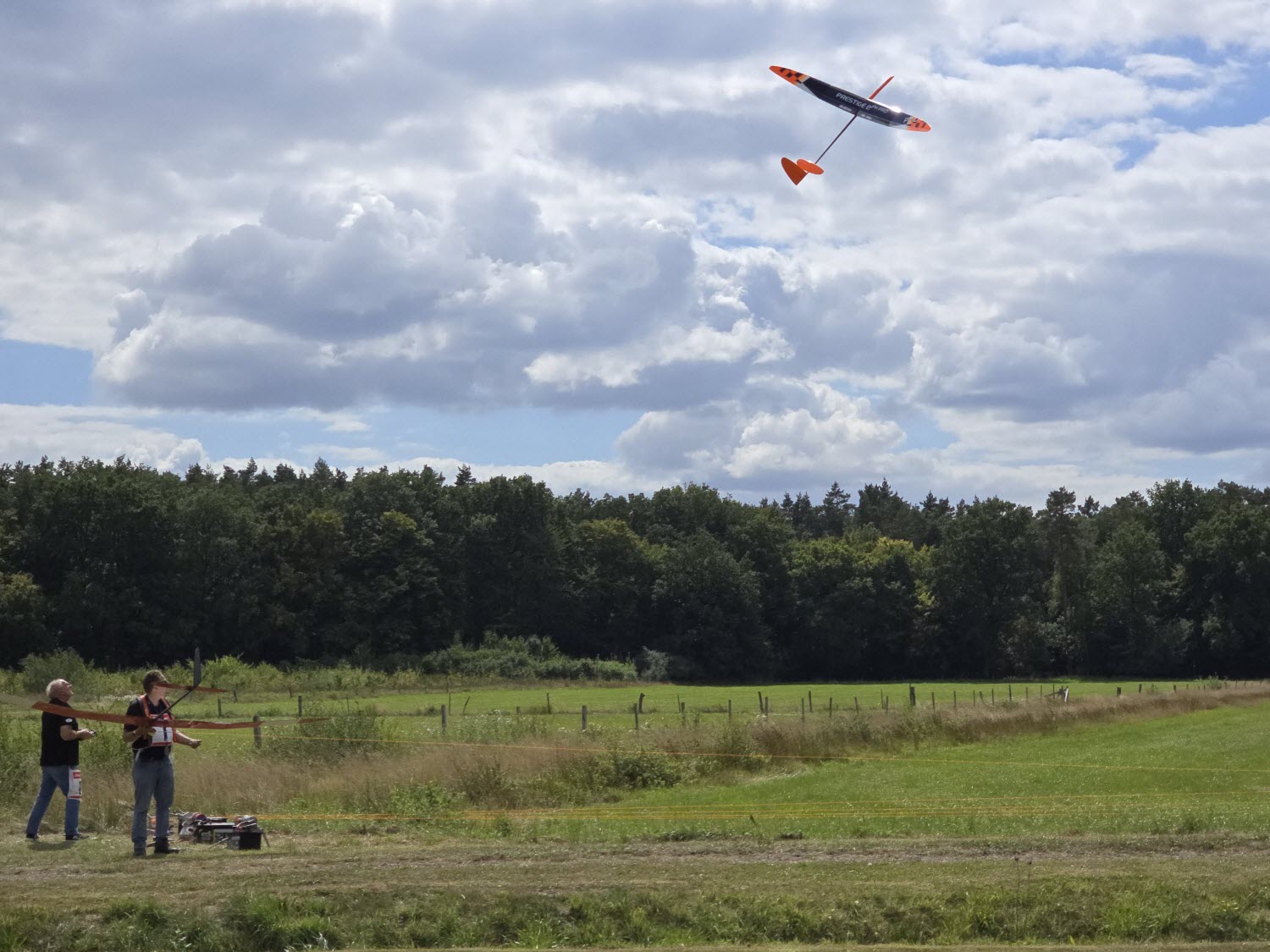 Zehn Piloten fanden sich pünktlich bei der Wettbewerbsleitung um Marco Weingarz und Oliver Rodefeld ein um sich für die Teilnahme zu registrieren. Da die Wetterverhältnisse gute thermische Bedingungen versprachen, einigte man sich auf eine Flugzeit von sechs Minuten mit der Landung auf dem Punkt. Pro Durchgang wurde das Teilnehmerfeld per Zufallsgenerator in vier Gruppen zu je zwei bis drei Personen eingeteilt, welche dann in der gelosten Reihenfolge an den drei zur Verfügung stehenden Winden starteten. Im vierten Durchgang dünnte sich das Teilnehmerfeld um einen Piloten aus, da dieser sein Modell leider im Windenstart verlor. Die enormen Kräfte in dieser Phase des Fluges waren für die Tragflächenverbindung dann zuviel. Ein leiser Kommentar aus den Reihen der beobachtenden Mitstreiter war zu hören- "tja, nichts hält ewig...". Die verbliebenden Kontrahenten kämpften sich bei schlechter werdenden Wetterbedingungen noch bis durch den sechten Durchgang, bevor dann der Tages- und auch der Gesamtsieger des HHT Cup feststand. Die Sieger sind: